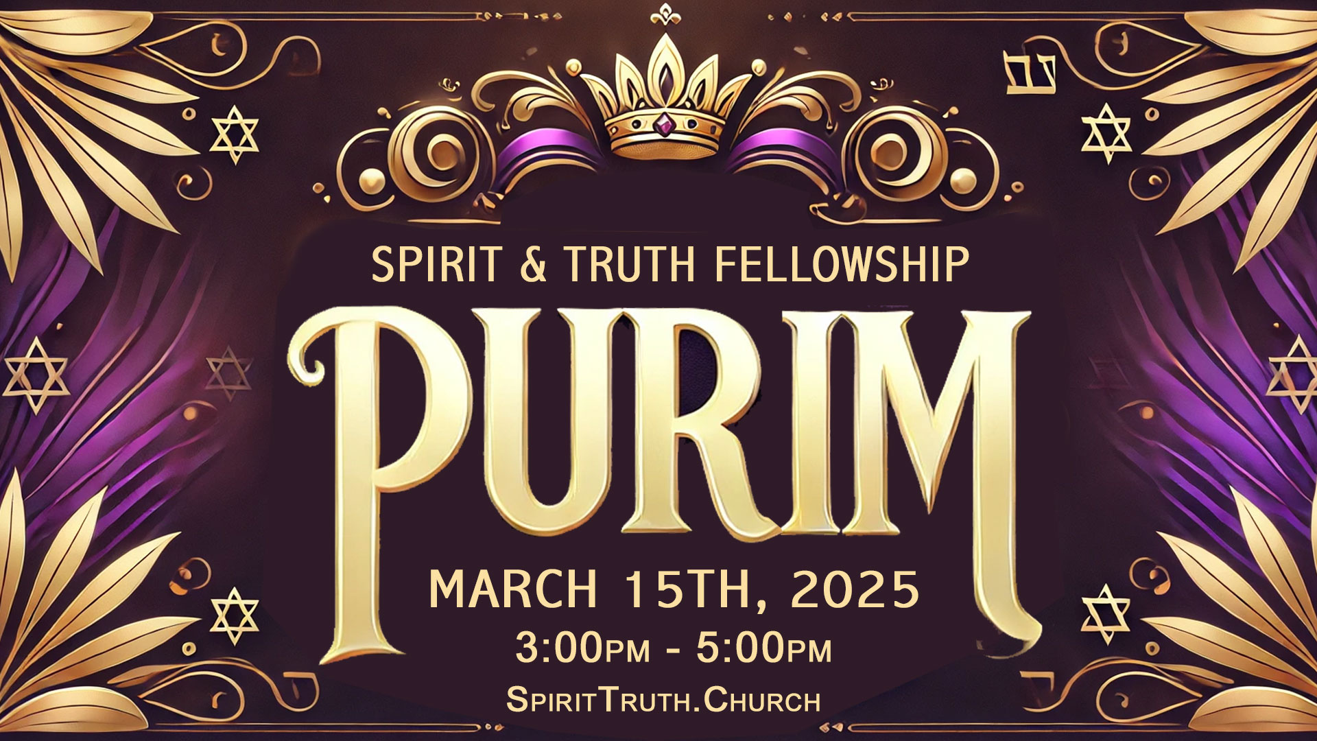 We invite you to come and join us on March 15th for our Purim Service at Spirit and Truth Fellowship!